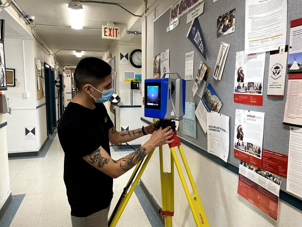Laser scanning data can be used to create “as built” architectural plans which can support repair and restoration work to Old Sun Community College. This plan was created using Autodesk Revit and forms part of a larger building information model (BIM) of the school. The Revit drawings and laser scanning data for this school are securely archived with access controlled by the Old Sun Advisory Committee.